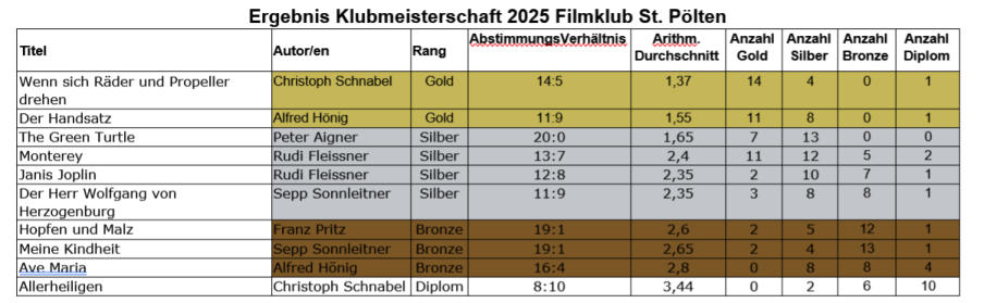 des Klubs statt. 14 Filme rittern um die Gunst der Jury, um gute Noten zu erhalten.